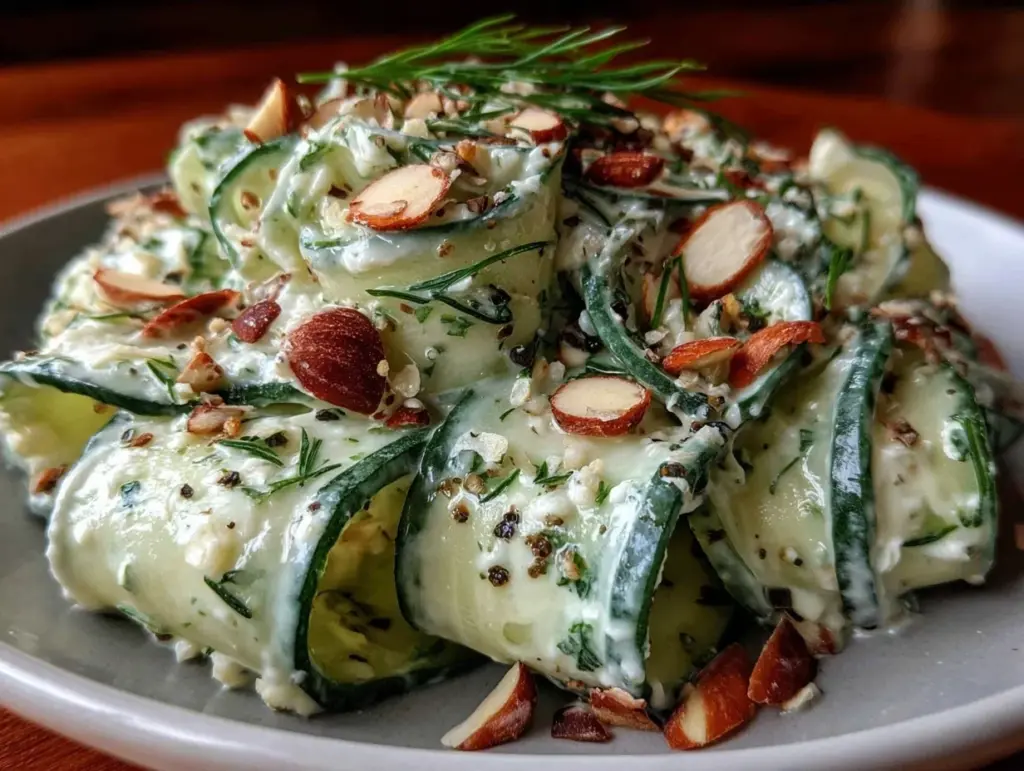 Creamy Cucumber Dill Salad Recipe with Toasted Almond Crunch Easy and Perfect