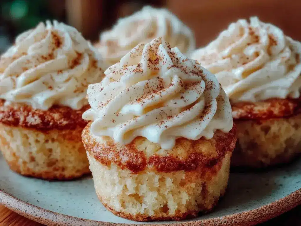 - Top and Serve: Pipe or spoon the cinnamon whipped cream onto each cupcake just before serving. Optionally, sprinkle a little extra cinnamon on top for garnish.