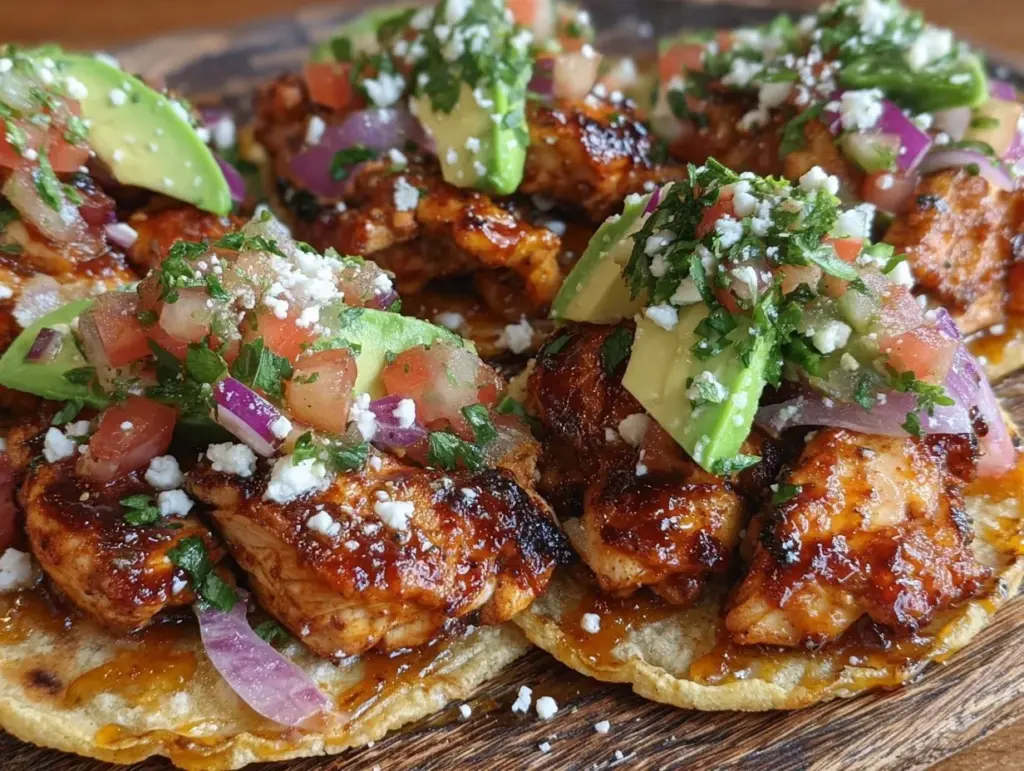 These smoky chipotle lime chicken tacos with fresh toppings are quick, easy, and perfect for a satisfying weeknight meal. The combination of tender chicken, tangy lime, and crisp fresh toppings creates a delicious and balanced flavor.