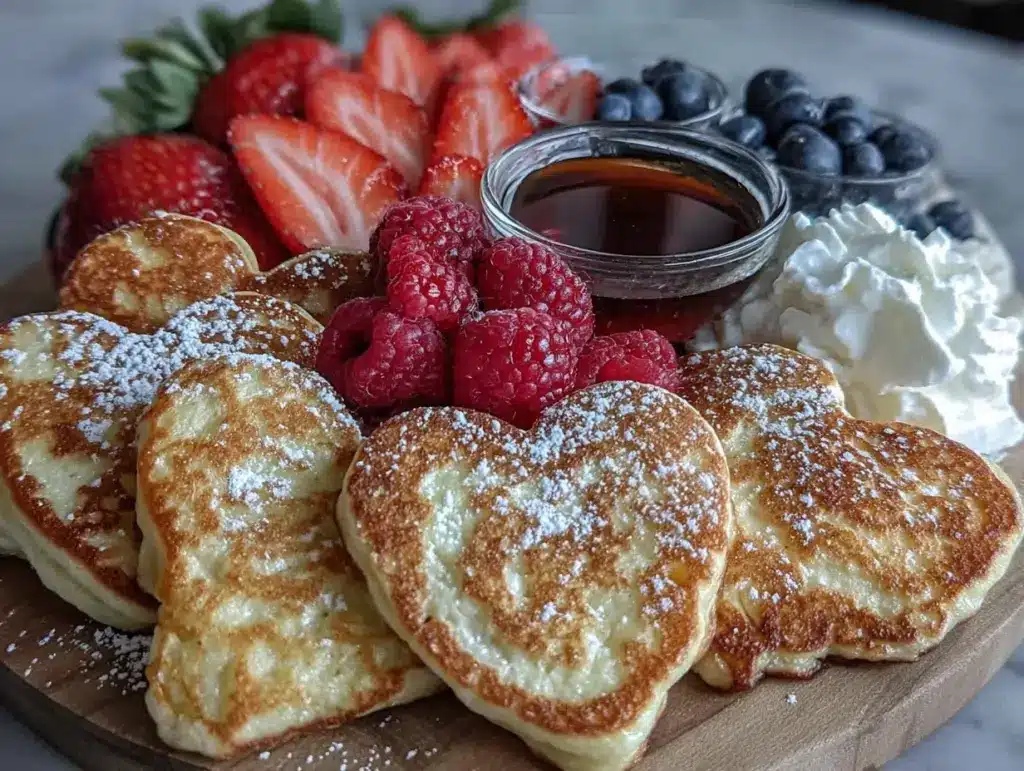 It’s more than just pancakes—it’s a celebration on a board. You can load it up with berries, chocolate chips, whipped cream, or even a little Nutella if you’re feeling wild. The possibilities are endless, and honestly, making this board is half the fun. It’s the kind of brunch that brings everyone together, makes memories, and turns a simple meal into a party. If you want a recipe that’s reliable, fun, and soul-soothing, this one is for you. Trust me, friends will ask you for “the pancake heart recipe” for years to come.