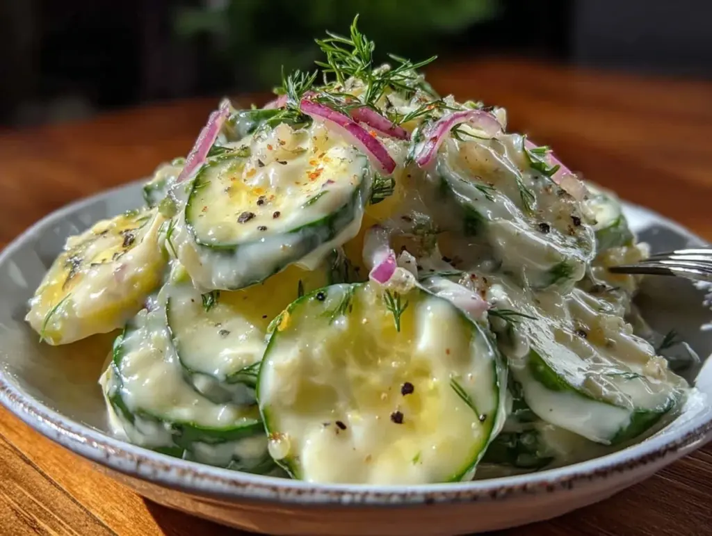 It was one of those unexpectedly warm spring evenings when I found myself rummaging through the fridge, craving something crisp and simple. Honestly, I wasn’t planning anything fancy—just a quick side to go with some grilled chicken. Then, my eyes landed on a couple of cucumbers and a small bunch of fresh dill sitting forgotten in the crisper drawer. I remembered a casual comment from a friend who swore by a creamy cucumber dill salad for beating the heat without the heaviness. Skeptical but curious, I threw together a few ingredients, not expecting much. But oh, that first bite—the cool crunch of cucumber wrapped in a tangy, creamy dressing with that unmistakable dill zing—it was like a summer breeze on a plate. Since that day, this salad has quietly become my go-to whenever I want something light but satisfying. It’s the kind of recipe that makes you pause, close your eyes, and just savor the freshness. No fuss, no frills, just a perfect balance of flavors that feels like a little reset for your taste buds.