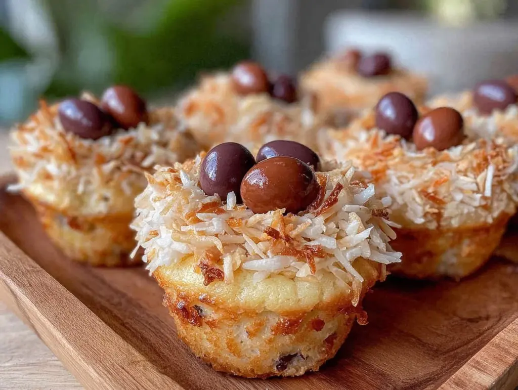 If you don’t have a stand mixer, no worries—a sturdy whisk and a bit of elbow grease will do just fine. I’ve also used silicone muffin pans with good results, but liners keep the nests intact better. For toasting coconut, a simple baking sheet works perfectly; just keep an eye so it doesn’t burn.