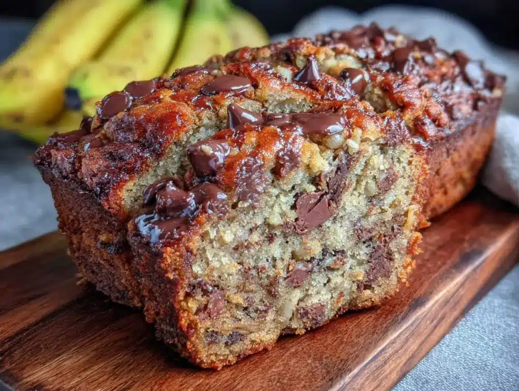 A tender, extra moist banana bread loaded with chocolate chips, perfect for breakfast, snacks, or dessert. This easy homemade recipe uses simple ingredients and yields a delicious, comforting loaf.