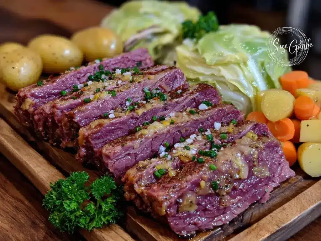 A comforting slow cooker recipe featuring tender corned beef brisket cooked low and slow with cabbage and root vegetables, perfect for cozy dinners or St. Patrick’s Day.
